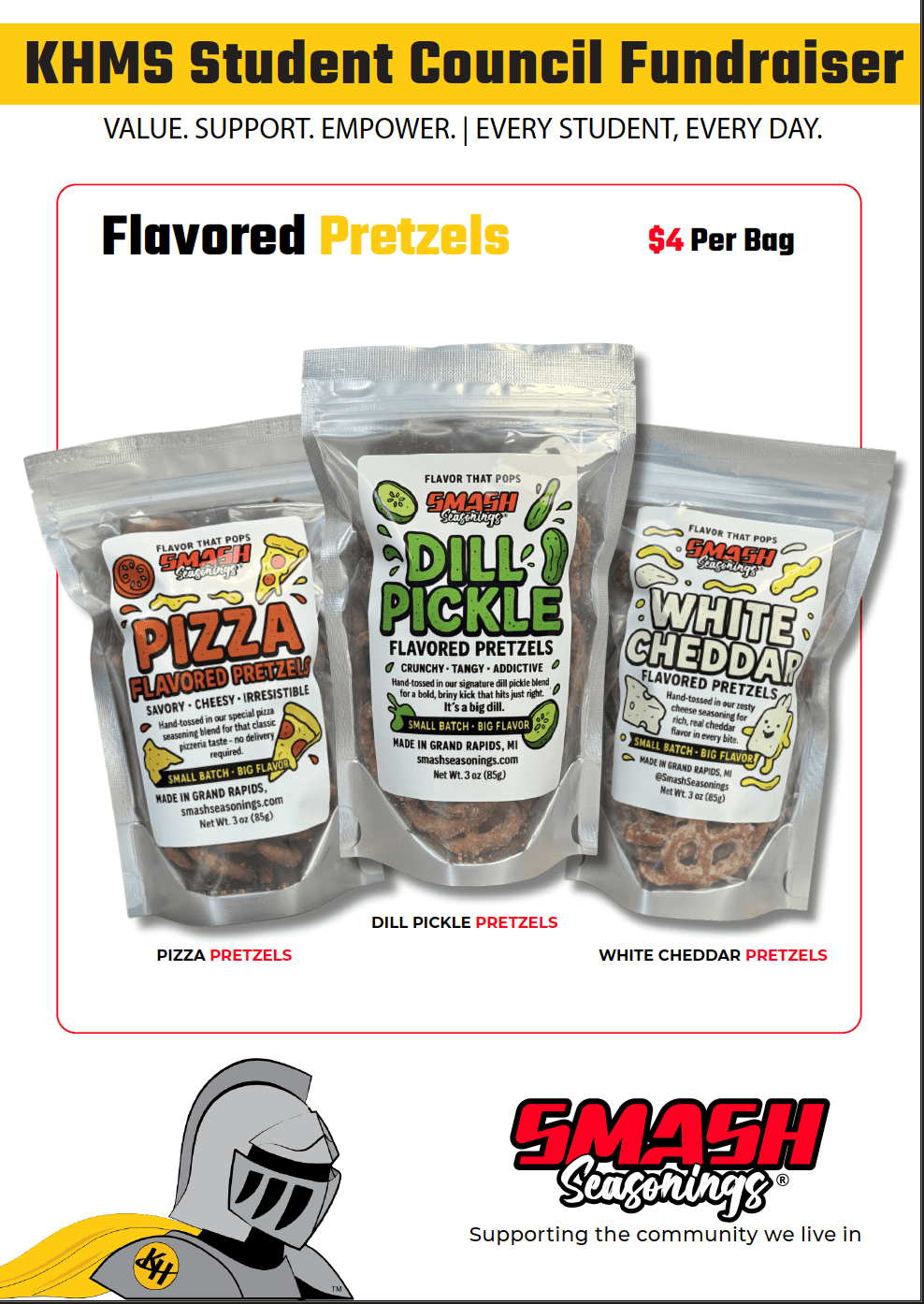 Our Flavored Pretzels sell for $4, with students earning $1.50 per bag sold.